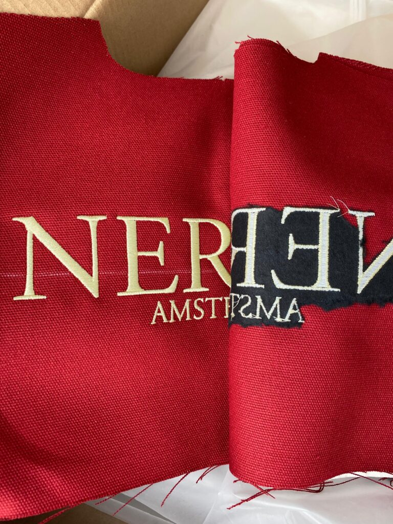 So we looked for a pattern producer to get our new design to reality. We also did some research on the history of the rowing club Nereus to find a logo that fits and after a while we got a foto of an old design that was pressed in leather. Unfortunately we couldn’t find the files of the old design so we had to digitise it ourselves.